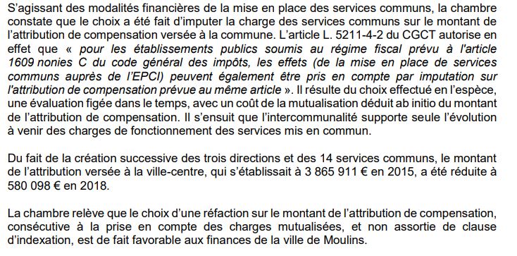 regards03 avait expliqué que c'était tout au bénéfice de la ville de Moulins, les délégués communautaires étaient sceptiques. IL faut extraire deux phrases du rapport de la Chambre des comptes ils vont sans doute la croire :