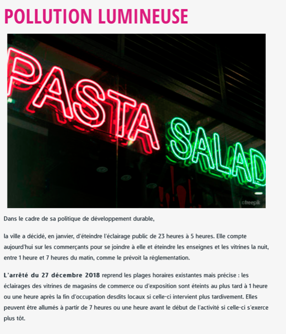Si la politique de développement durable consiste a éteindre l'éclairage public et les enseignes, cela ne va pas très loin. Le développement durable ce n'est pas un retour au Moyen-Age.Savez vous combien consomme une enseigne led sur une année 44 kwh soit 7 € pour 1 500 x 250 x 60 mm.