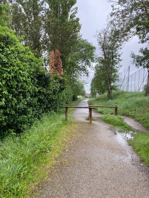Si, au lieu de prendre le chemin de l'ancien golf, on tourne sur la droite rue de la Baigneuse ,on passe devant le collège François Villon pour arriver au parking des Jardins du Danube après avoir traversé la rue Bergeron -Vebret . On peut prendre    l'allée de Gherla longue piste rectiligne qui nous conduit boulevard Louis Guillot à hauteur du stade de Champ-Daillant  . Un autre chemin tout aussi carrossable  tracée sur la droite mais plus sinueux conduit au même point.