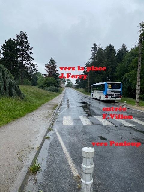 Nous nous retrouvons donc rue Jean  Vidal , puis par la piste - chemin située au pied du talus du stade annexe de Bellevue nous rejoignons le Boulevard  Saint-Exupéry . On arrive ainsi à la rentrée élèves du collège F.Villon .Nous avions eu une bonne idée, je pense de créer ce chemin lors de la création du stade annexe.