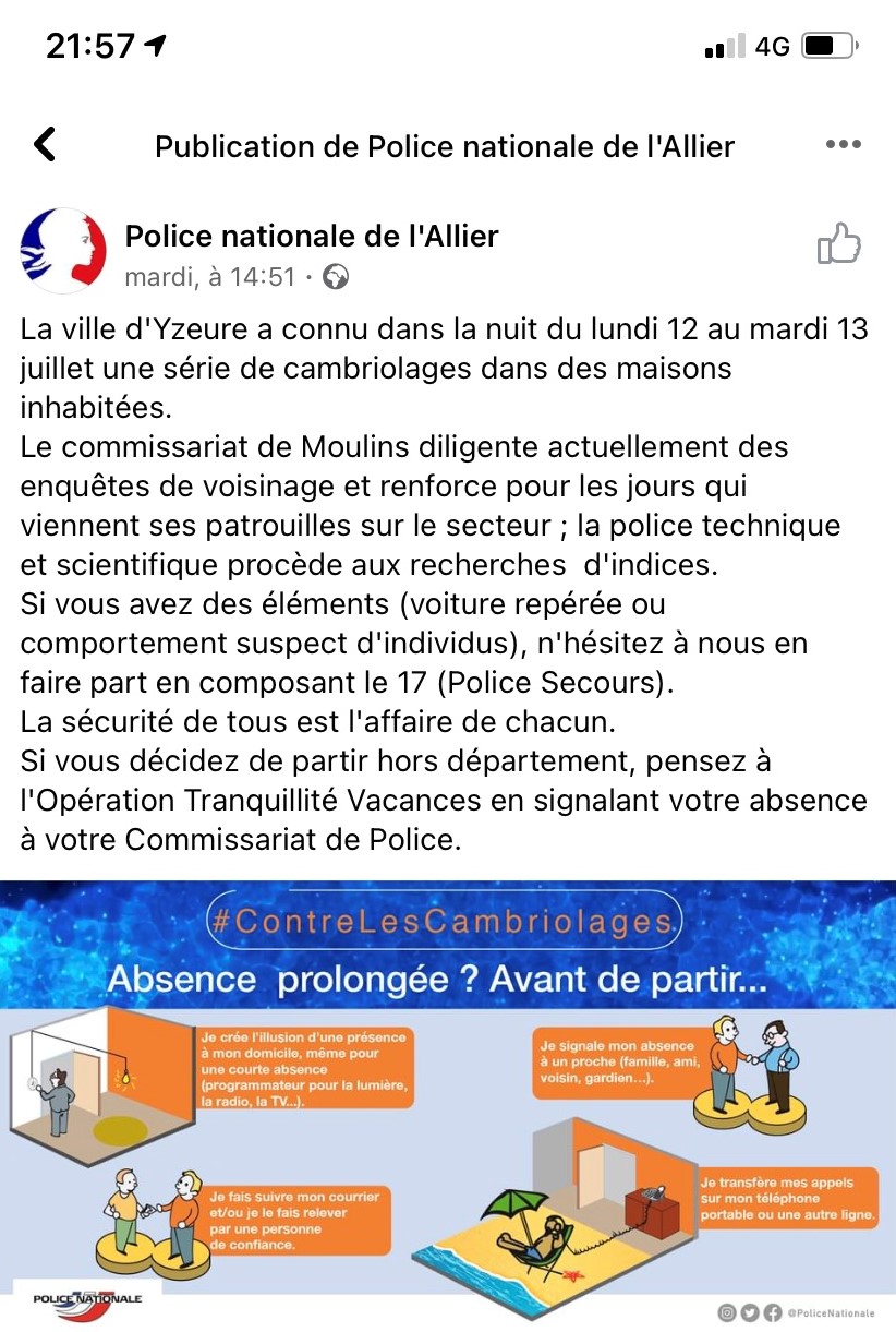 Plusieurs cambriolages ont eu lieu à Yzeure la nuit du 11 juillet au 12 juillet 2021 dans des maisons inhabitées .