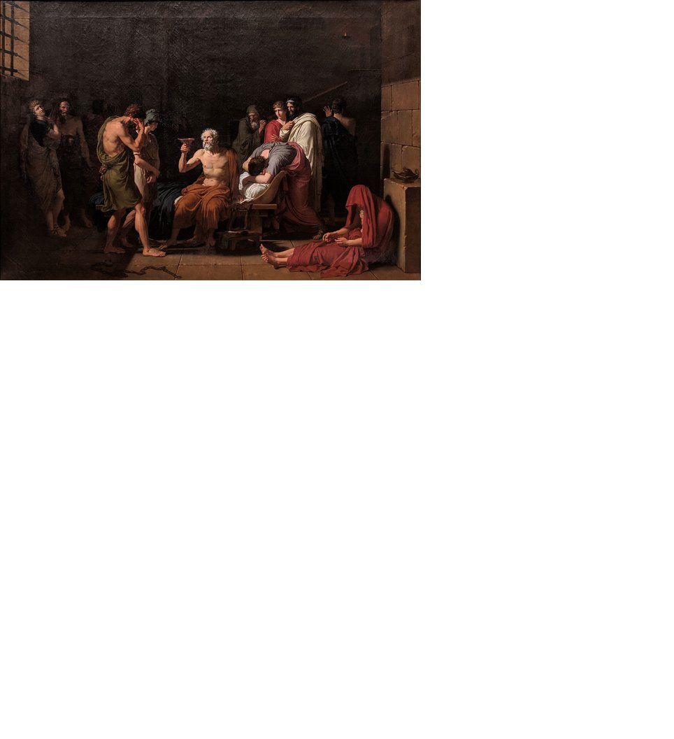 Illustration : tableau La mort ( PS) Socrate FX Réau 1802 ( mère Sophronisque père : Pénaresque ce qui explique que l'on mette PS sur ce tableau