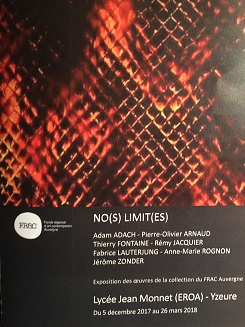05 Déc 2017 NO(S)LIMITE(S):Exposition FRAC Auvergne.Lycée Jean Monnet.(EROA).Yzeure EXPOSITION Du 5 décembre 2017 au 26 Mars 2018 Précédent Suivant tweet
