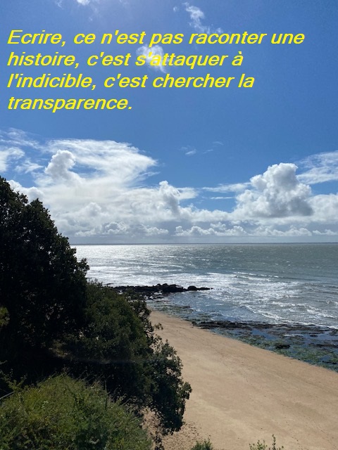 Ecrire, ce n'est pas raconter une histoire, c'est s'attaquer à l'indicible, c'est chercher la transparence.
