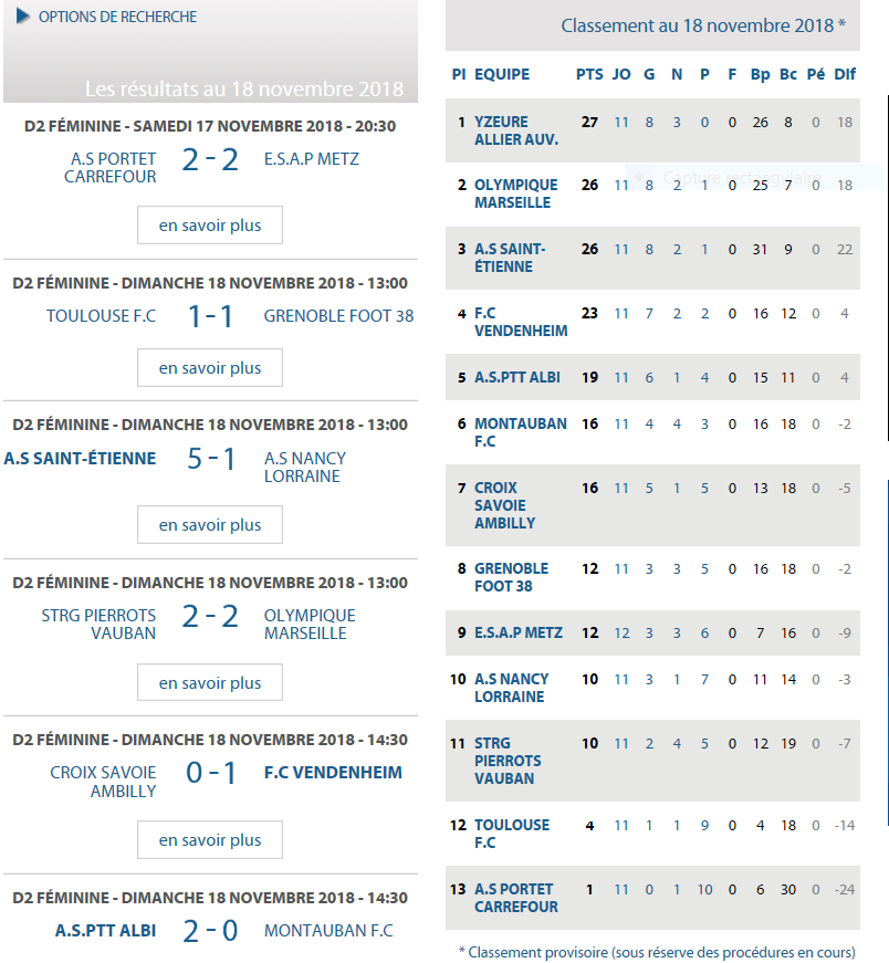 Superbe victoire (2-1) du Football Club Féminin d'Yzeure à Marseille. Elles prennent la première place de la poule B du championnat de D2 devant Marseille