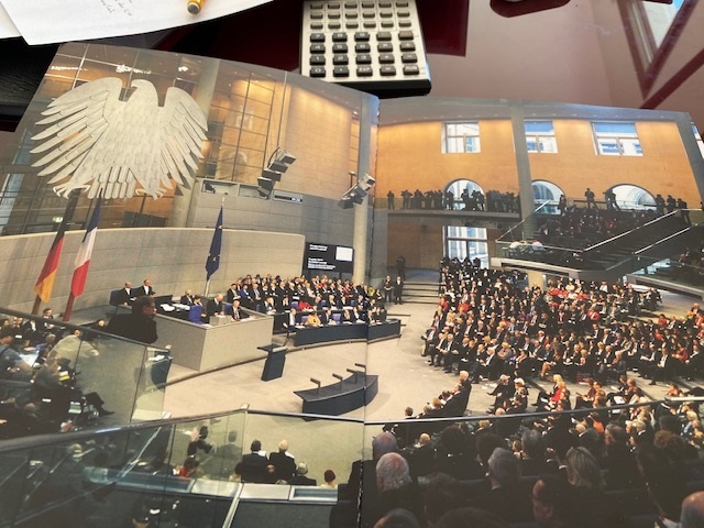 Je faisais partie des députés de l'Assemblée Nationale qui se sont rendus à Berlin dans la salle plénière du Bundestag dans le bâtiment du Reichstag qui avait été transformée de manière à pouvoir accueillir l'ensemble des députés de l'assemblée nationale et du Bundestag allemand.