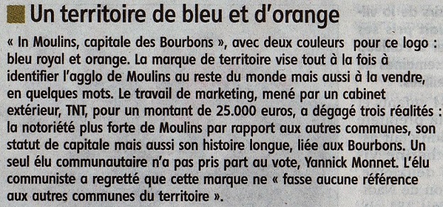 Étonnant ! pourquoi La Montagne parle d'un cabinet extérieur 25 000 € pour mettre "in" devant Moulins capitale du Bourbonnais. Quelle trouvaille !! on a pris deux lettres de Moulins... On aurait pu prendre mo, ou, li … .identifier l'agglo au reste du monde rien que ça ! Quelle notoriété plus forte que les autres communes. Lesquelles ? Celles de la com d'agglo, du Bourbonnais ?