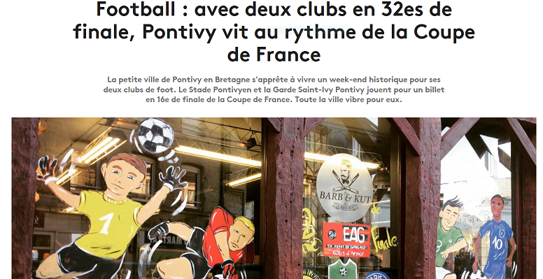 Le stade Pontiven va rencontrer Guingamp (L1) en 32ème de finale de la Coupe de France et la Garde Saint-Ivy Pontivy affrontera le PSG(L1). Remarquable. Heureusement que personne n'a songé à faire disparaître l'un de ces deux clubs d'une même ville. Ces deux clubs jouent en N3. Même si les adversaires sont coriaces, nous leur souhaitons bonne chance.