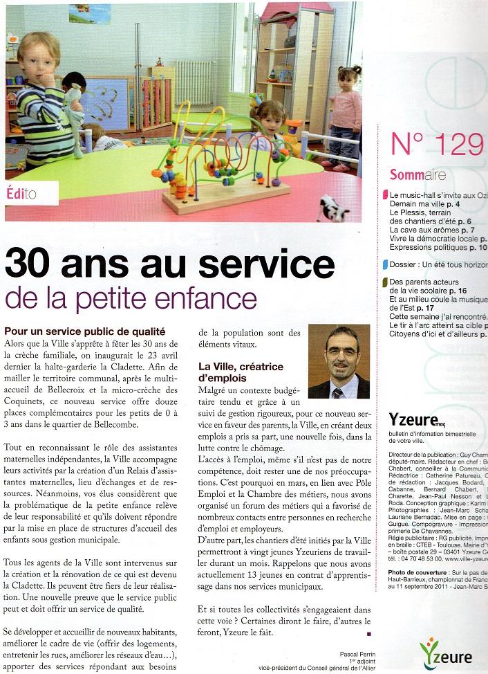 Guy Chambefort député -Maire(1989-2014) avait laissé en 2012 la rédaction de l'éditorial d'Yzeure Magazine à Pascal Perrin  1er adjoint qui préparait une candidature pour les prochaines élections municipales à Yzeure en 2014.