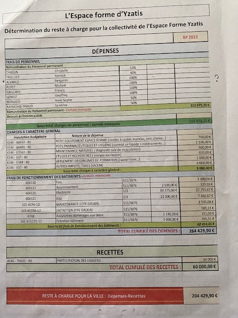 Vous nous dites que la ville d’Yzeure est en mauvaise posture et que ce n’est pas de votre faute, vous avez énoncé certaines raisons pour justifier votre gestion. Nous ne sommes pas d’accord sur cette analyse et les solutions proposées. En premier lieu les chiffres de fonctionnement, notamment les coûts salariaux, prennent en compte des agents qui ne travaillent pas effectivement à temps complet dans ces services. Par ailleurs, d’autres chiffres paraissent également non crédibles. Fermer des services n’est pas le meilleur moyen car si ces lieux (Maison des Arts et des Sciences et Espace Forme d’Yzatis) sont fréquentés c’est bien parce qu’ils répondent à des besoins ! Enfin, le déficit de fonctionnement n’est pas non plus si important.