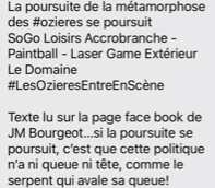 Oserez-vous nous dire le contraire ? si oui il faudra nous dire lesquels Nous venons d’en parler mais ce n’est pas le hochet lumineux que l’on va vous donner pour les Ozières , peu adapté à un espace naturel, néfaste pour l’environnement ,qui peut tenir lieu d’ investissement.