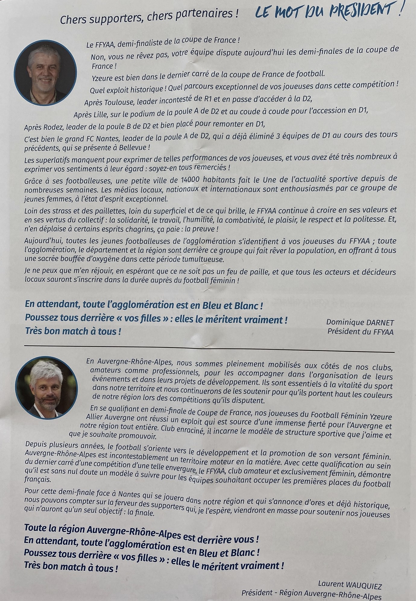 Pas de finale historique pour le FC Nantes, c’est bien Yzeure qui ira défier le PSG et tenter de devenir le premier club de D2 à soulever la Coupe. (Compte rendu Ouest France ) .