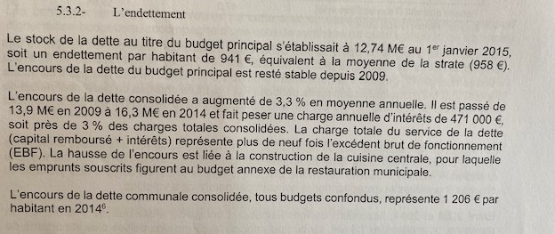 Et pour compléter voici un extrait du Rappor Synthèse définitif de la CRC du 19 décembre 2016.