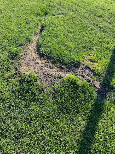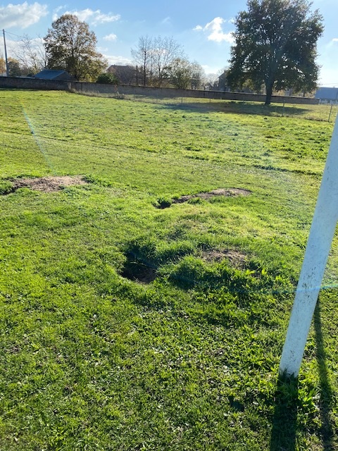 Et oui ce refrain pour faire remarquer que rien n'est fait pour réparer ces dégradations sur la pelouse pouvant provoquer des blessures;