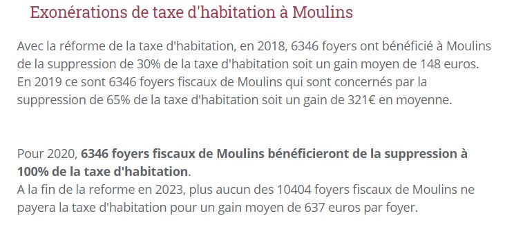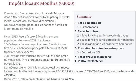 Ainsi depuis 2002,contrairement à ce qu' il dit le Maire de Moulins a touché 20 700 000 d'impôts locaux en 2018 contre 10 700 000 en 2002 tout en ayant main tenu les taux .Et la presse ne le dit pas.