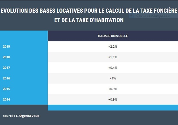 Ces hausses proviennent des relèvements des bases des valeurs locatives