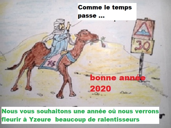 Il est écrit : "Carte de vœux 2020 de la ville d'Yzeure qui répertorie les photographies des agents acceptant de paraître sur ce support de communication institutionnel ".