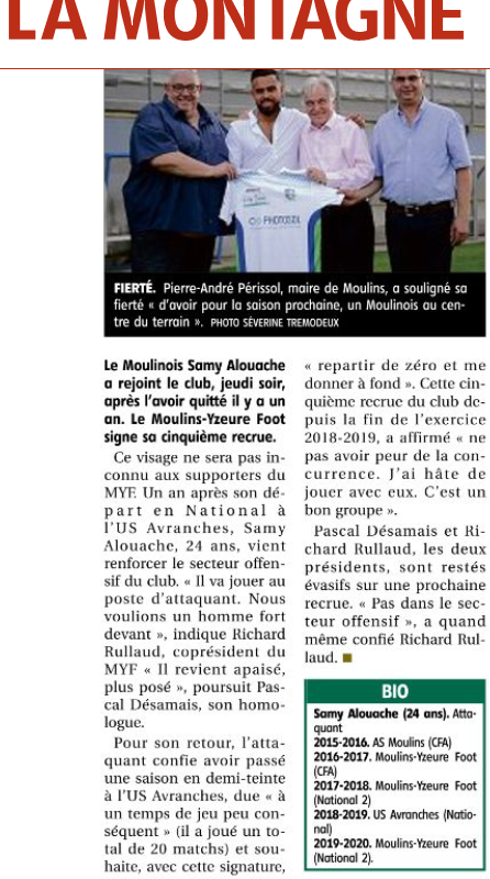 La Montagne plante comme d'habitude le décor et la multiplication des portraits du Maire de Moulins se poursuit… Il doit y avoir un blocage (avec tous ces algorithmes) pour la sortie du journal si l'objectif n'est pas rempli. Tout est bon : les visiteurs du CNCS, une nouveauté les ambassadeurs de Moulins, et là le retour au point de départ d'un ancien joueur. On peut se demander si tous le quotidiens locaux de France et de de Navarre font la même opération 64 clubs de N2 (sans compter la N1 et la N3) dans lesquels il y a au moins 10 joueurs qui changent chaque année cela fait au moins 640 photos de maire à publier!!! A ce sujet nous ne manquons pas de conserver les exemplaires concernés car il y a des règles à respecter en périodes électorales.